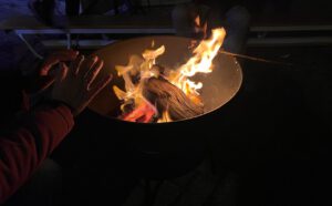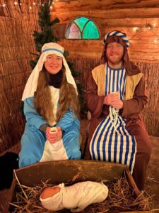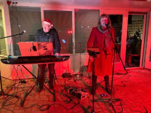 De wind was koud, maar de erwtensoep en de glühwein waren warm. De bezoekers aan de levende kerststal konden zich ook nog warmen aan vuurkorven bij levende muziek, even binnen in het Dorpshuis kletsen en op kraambezoek bij Jozef, Maria en het kindeke, lekker warm bij de dieren in de stal. Een mooi begin van de feestdagen.
